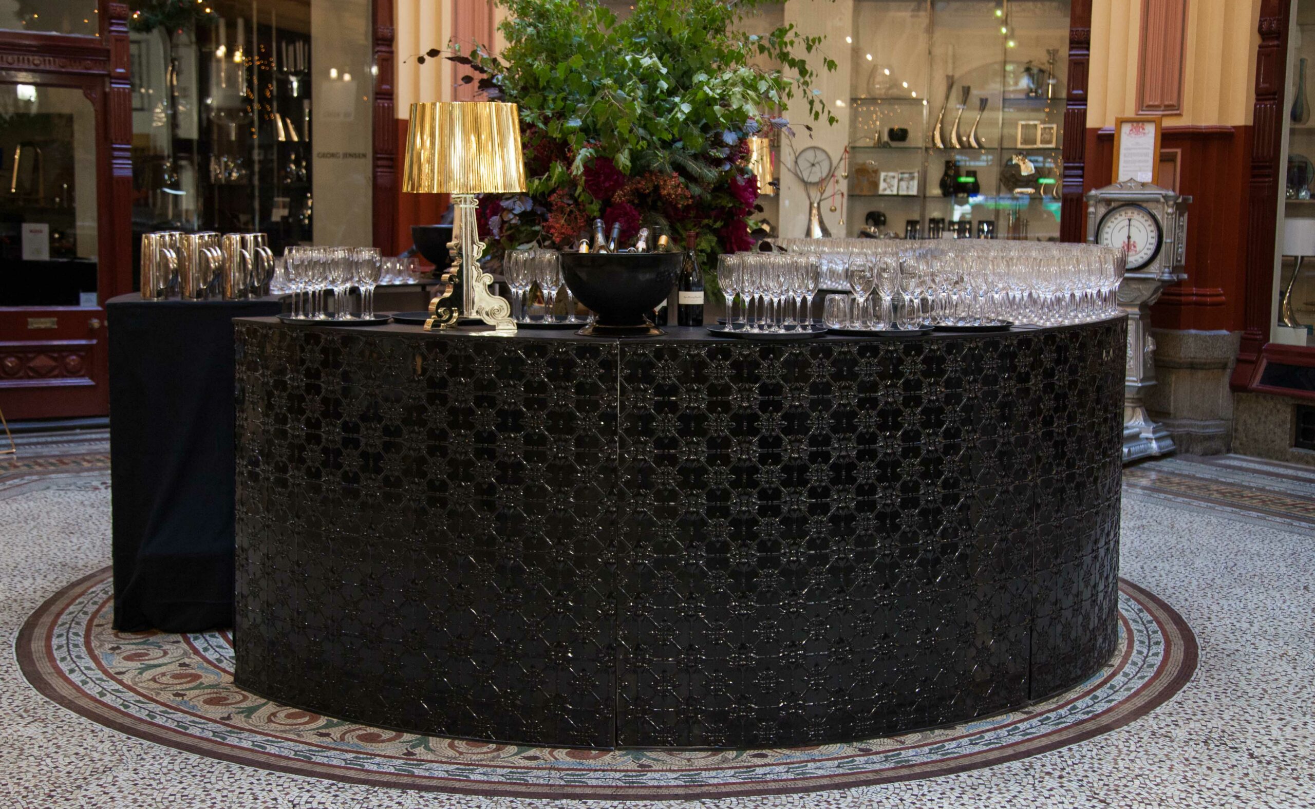 Adding a serious statement piece to the centre of the room, our circular Pressed Metal bars feature a timeless art deco design and an alluring gloss finish.
