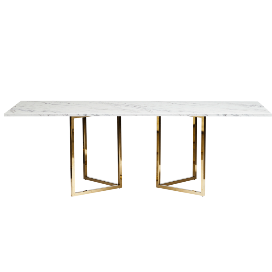 Our Optical collection models a classic Calcutta and Nero marble table design with elegant glossy gold or matte black framework that did away with linen coverings and wooden trestles. These were so popular we followed closely after with matching bars and foot stations.