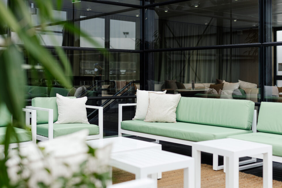 Featured in this look: Sorrento sofa‘s and armchairs, Sorrento side tables, Aspen chair, sofa, armchair and ottoman, Garden Umbrella, Lenny modular collection.