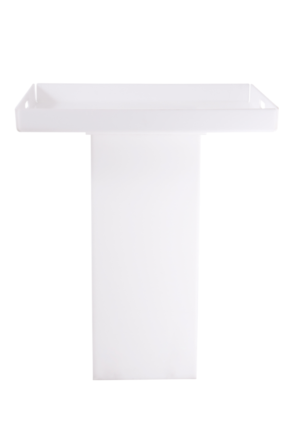 - Plinths and trays in timber, white, acrylic and neutral finishes